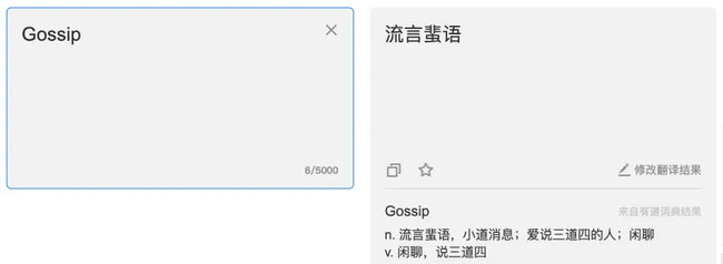Gossip 直译过来就是闲话、流言蜚语的意思。流言蜚语有什么特点呢?容易被传播且传播速度还快,你传我我传他,然后大家都知道了。